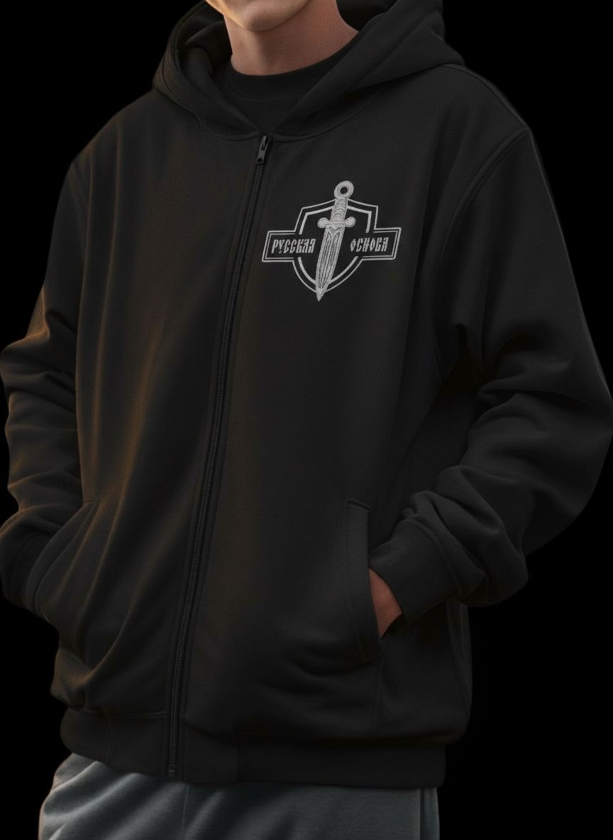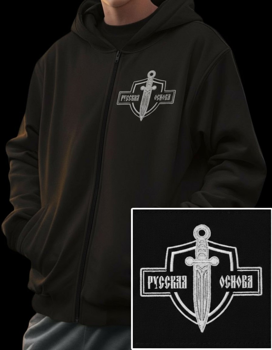 Толстовка от торговой марки "Русская Основа" с изображением легендарного ножа "Шип"