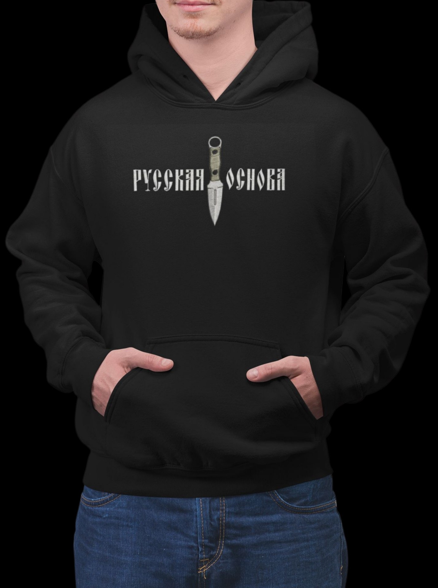 Толстовка от торговой марки "Русская Основа" с изображением легендарного ножа "Шип"