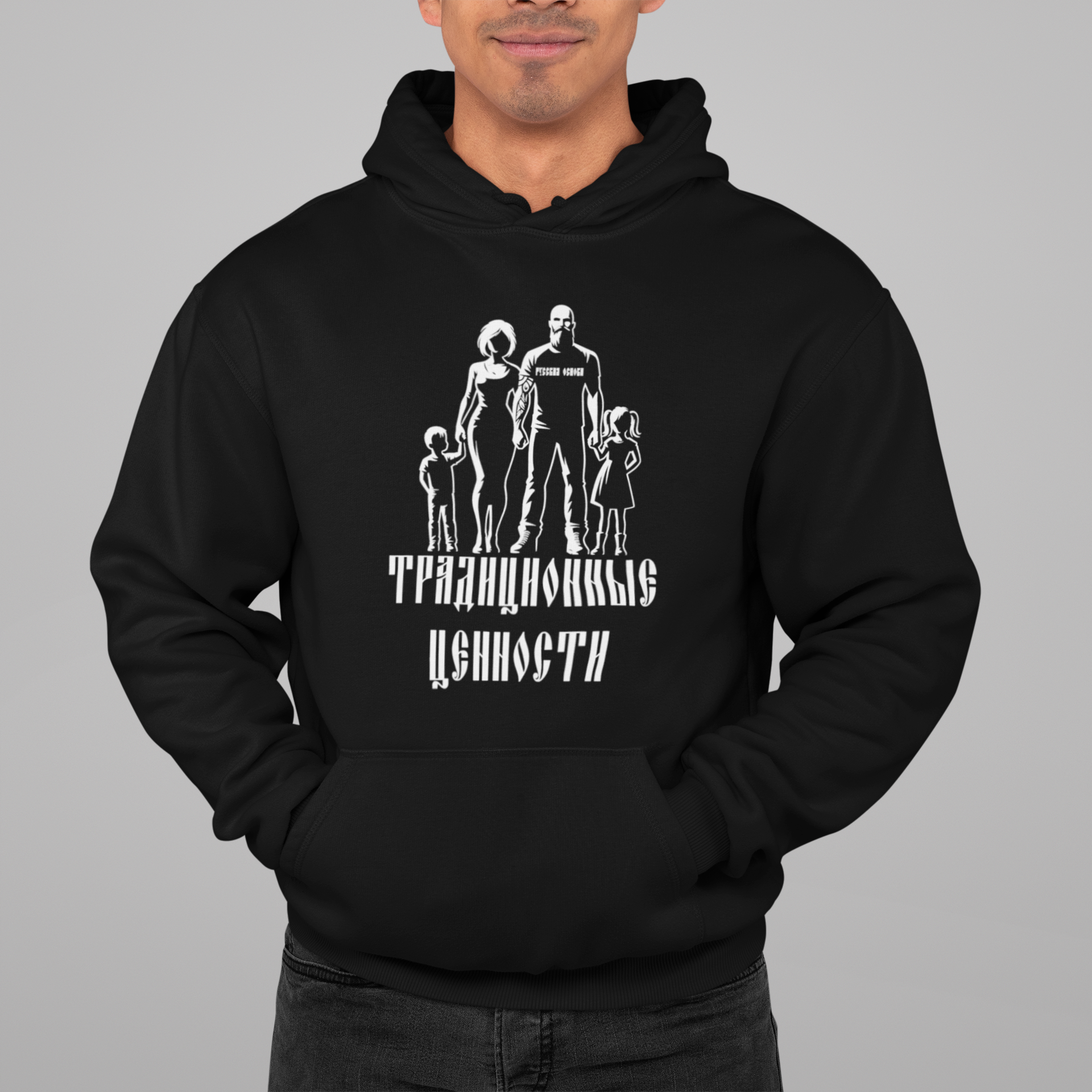 Худи от торговой марки "Русская Основа" пропагандирующее традиционные русские ценности.